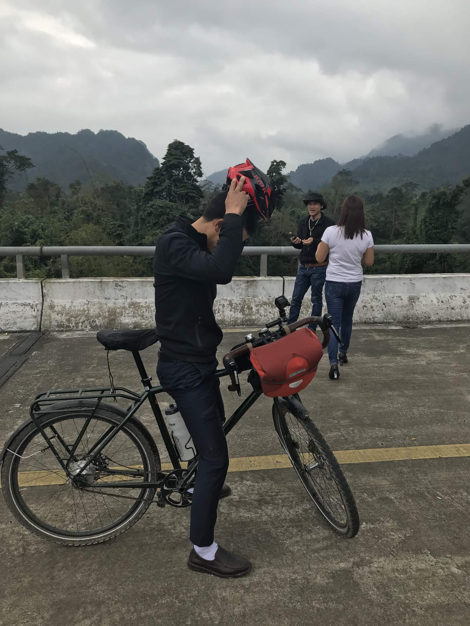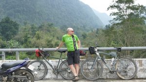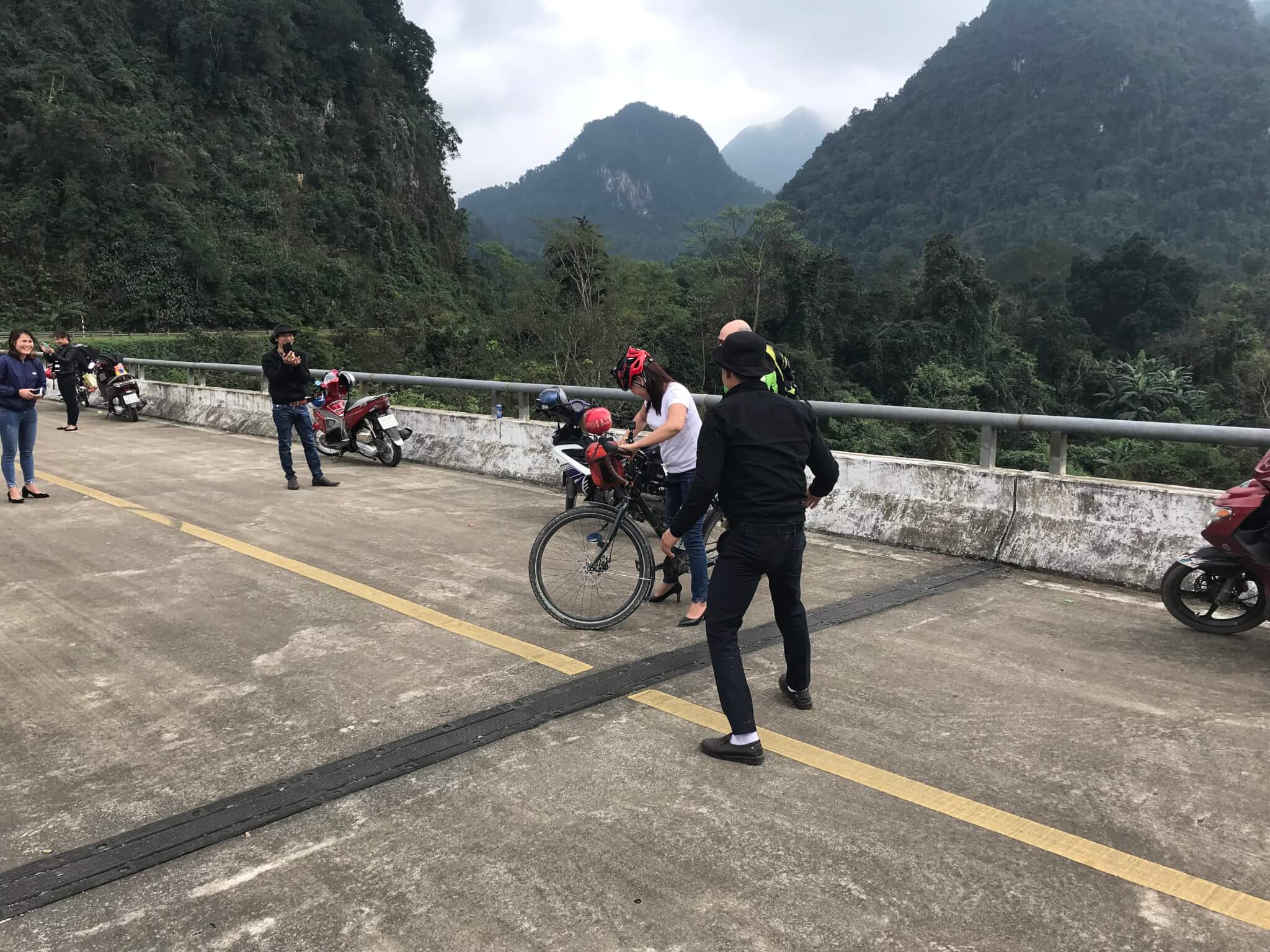 When we got to the Ho Chi Minh way, we were amazed as to how empty the road was – hardly any traffic, except holiday goers on their scooters. we spent quite a bit of time on one of the main bridges in the area walking on the “highway” as if it was closed to traffic. As we were taking pictures, a groups of Vietnamese joined us, and grabbed our bikes and started taking all sorts of pictures of them sitting on the bikes – Jörgs’ bike being quite big, they had a great time trying to cycle it – quite funny, and quite outgoing of the group – they were forever taking pictures of us, with our bikes…..