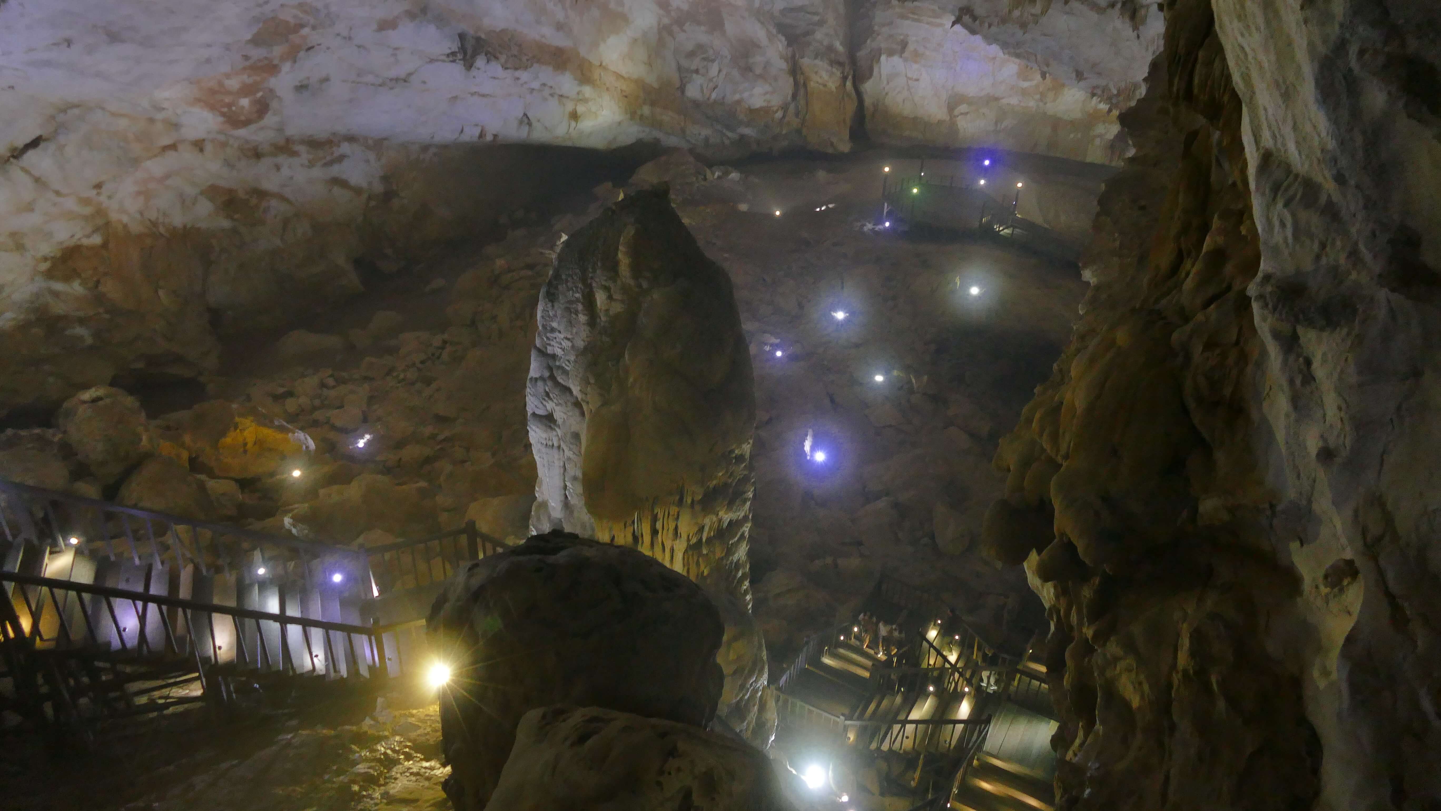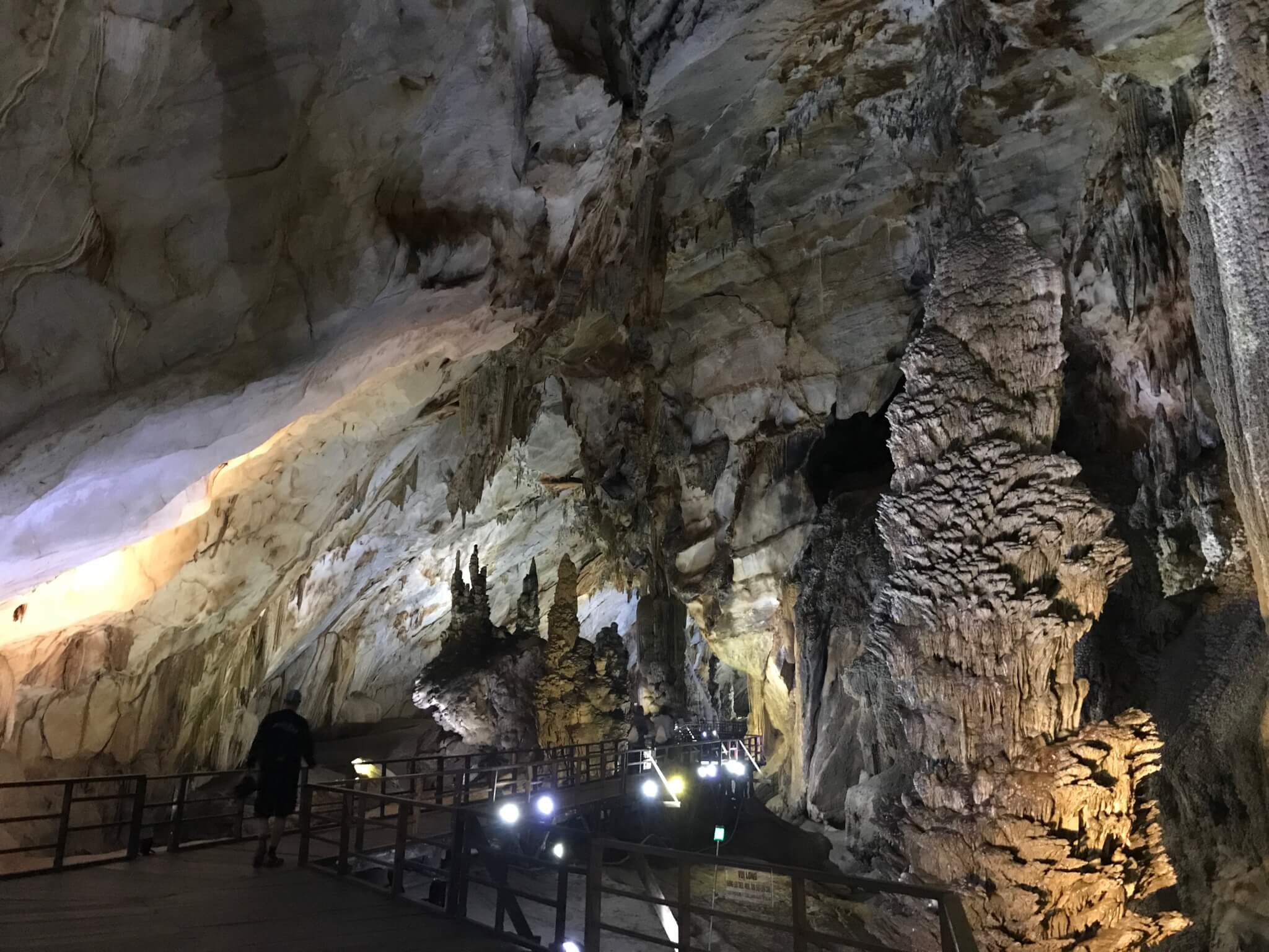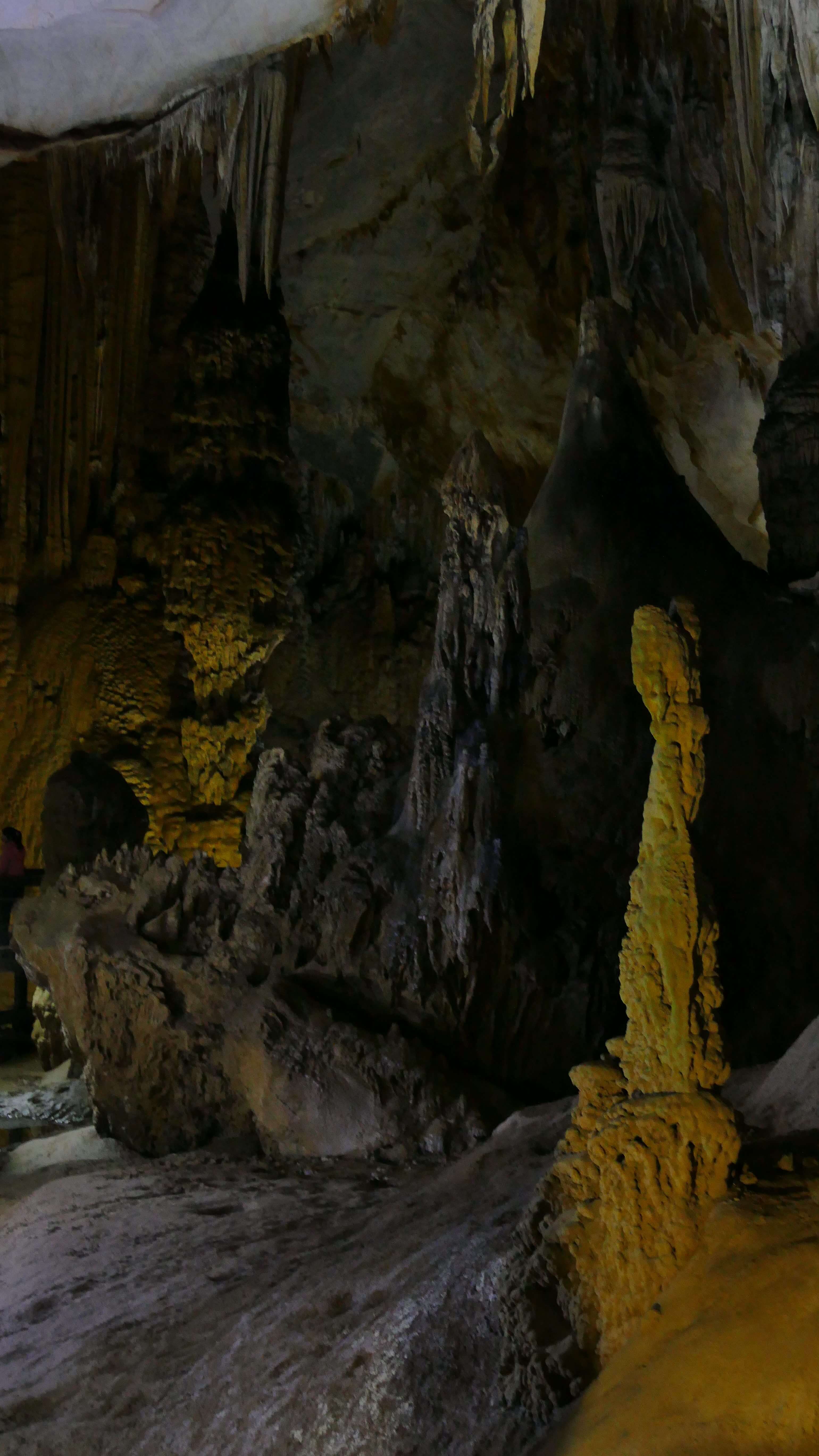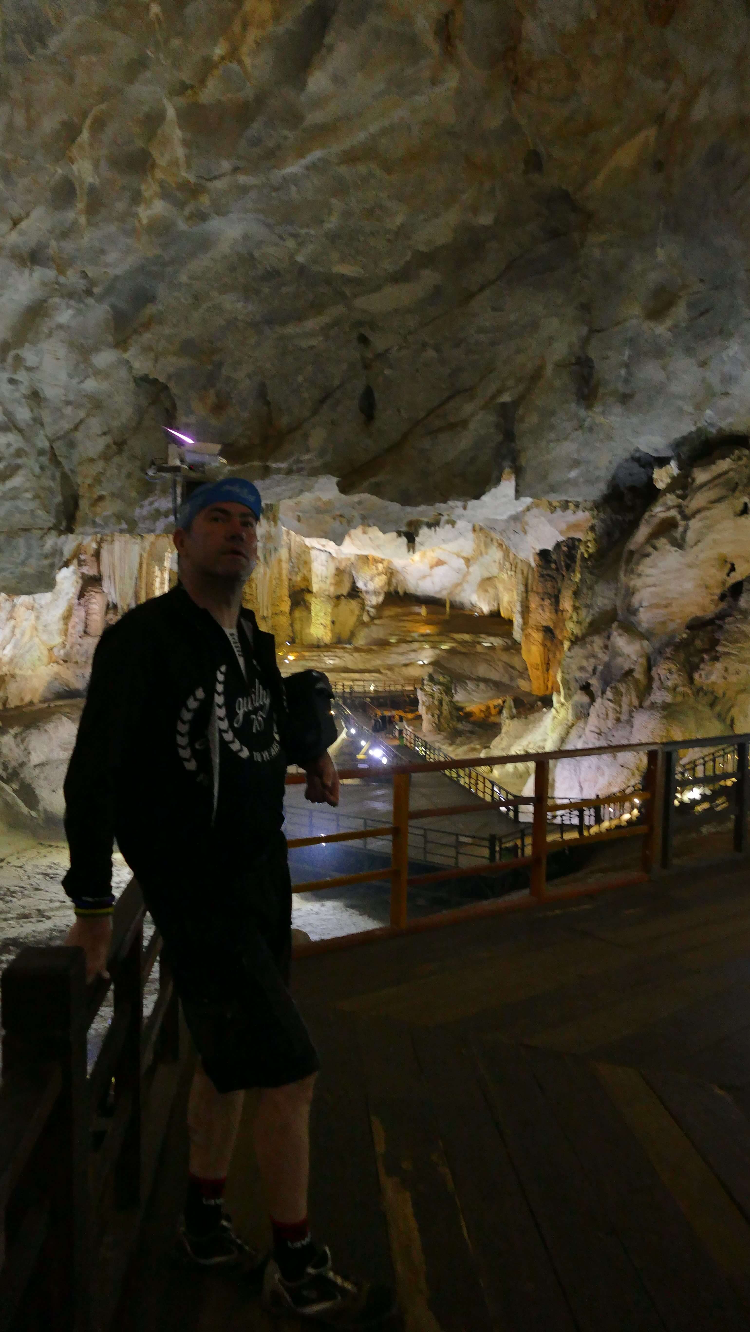But once inside, going down the wooden steps….oh my goodness, what an overwhelming experience coming into this HUGE cavern – bigger than any cathedral I have every seen – rivaling many covered football stadiums and ice arenas….. It took quite a while to really appreciate how absolutely immense this cavern was, and walking the 1.5-odd km to the back of the portion open to “day tourists” (with a guide, you can go back another 3.5km, and it goes further than that still), you have a feeling it never ends.