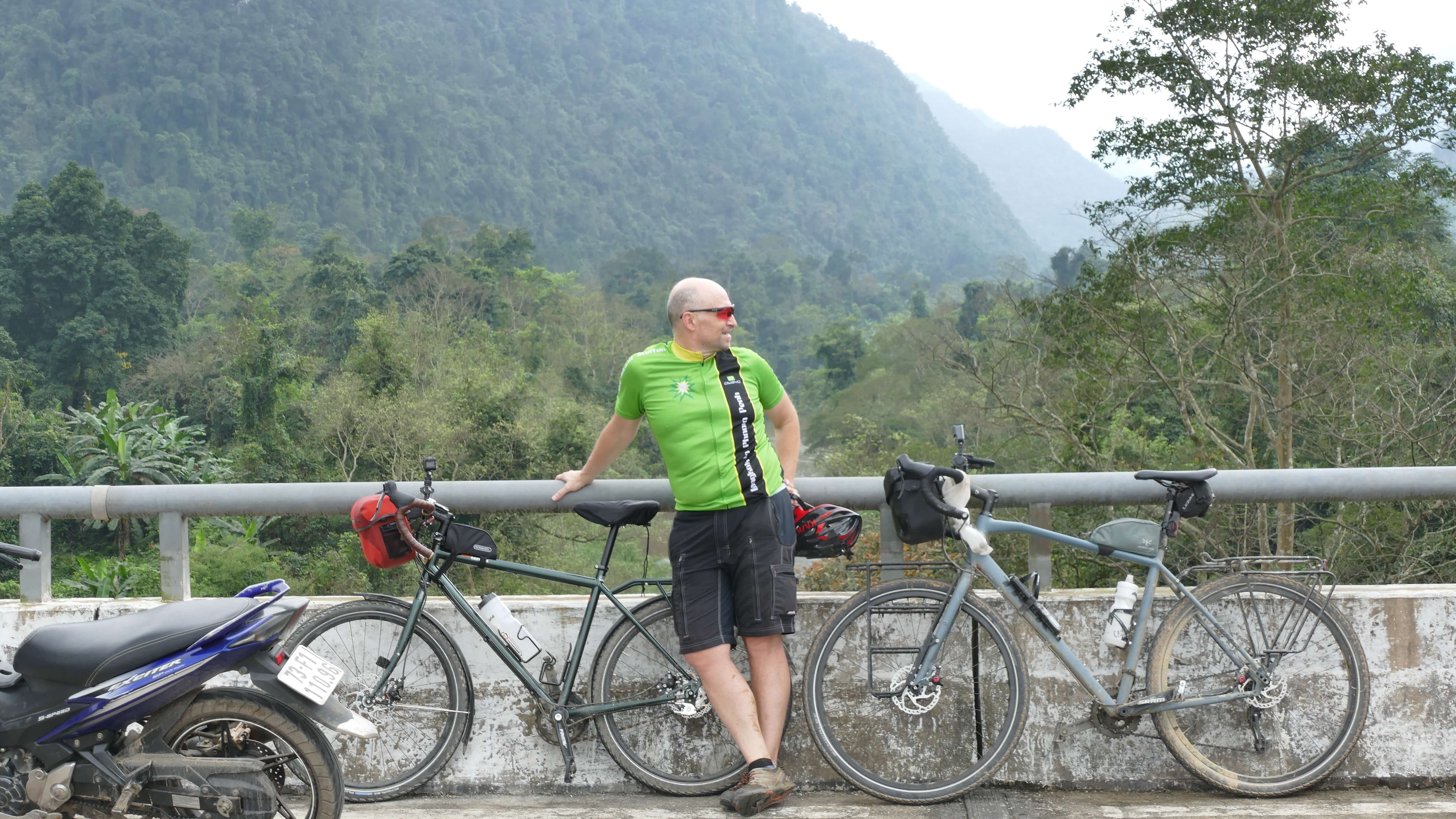 Then, it was off to the old Ho Chi Minh Way – first a nice steep downhill with amazing views into the valleys – the park is quite remote, and there is a lot of pristine forest yet here – it was a wonderful cycle.