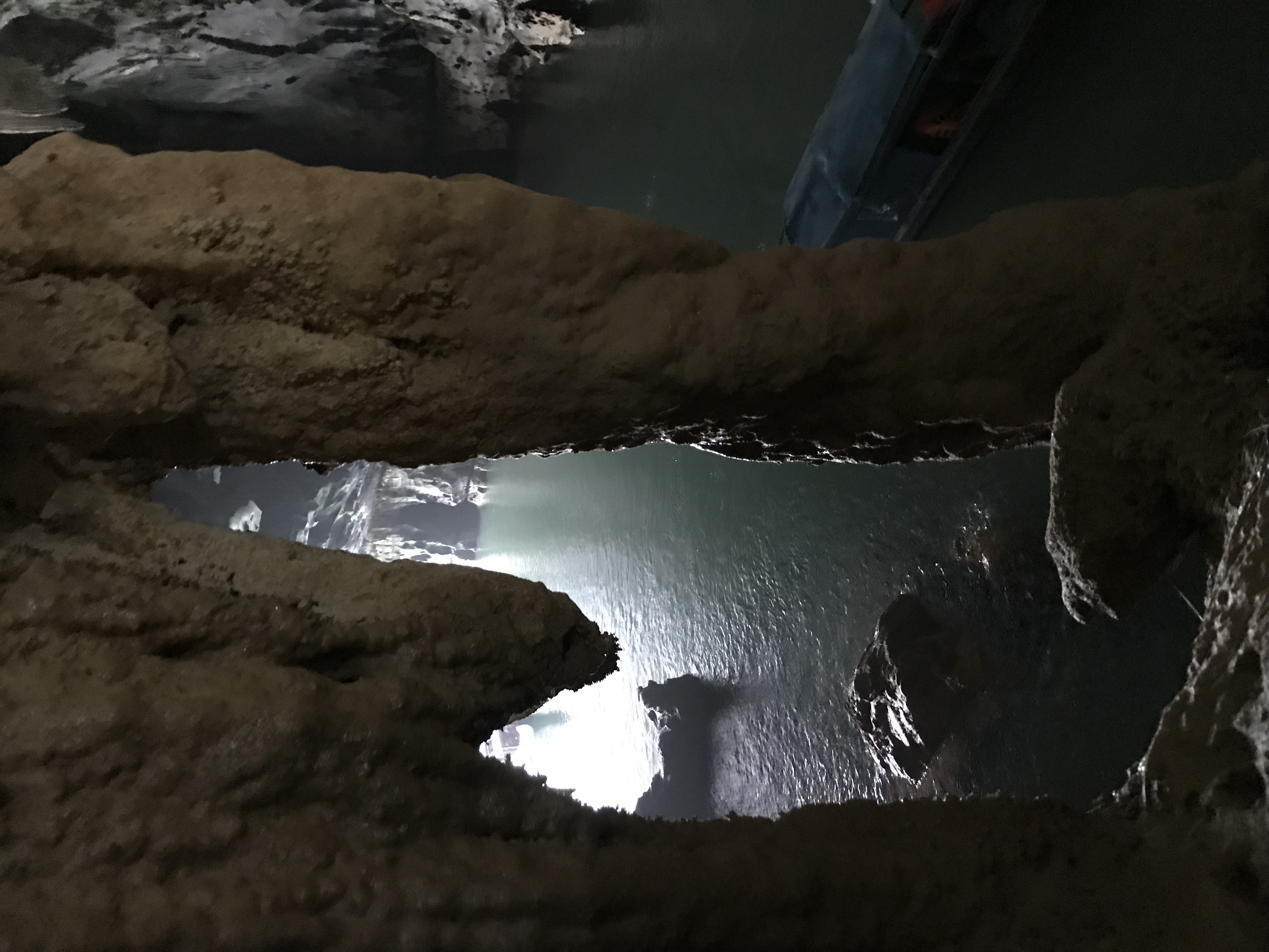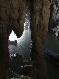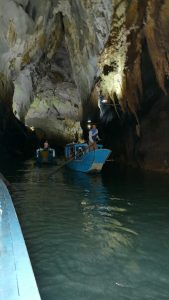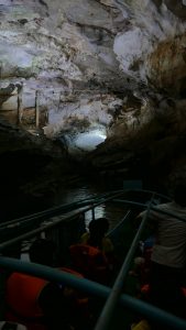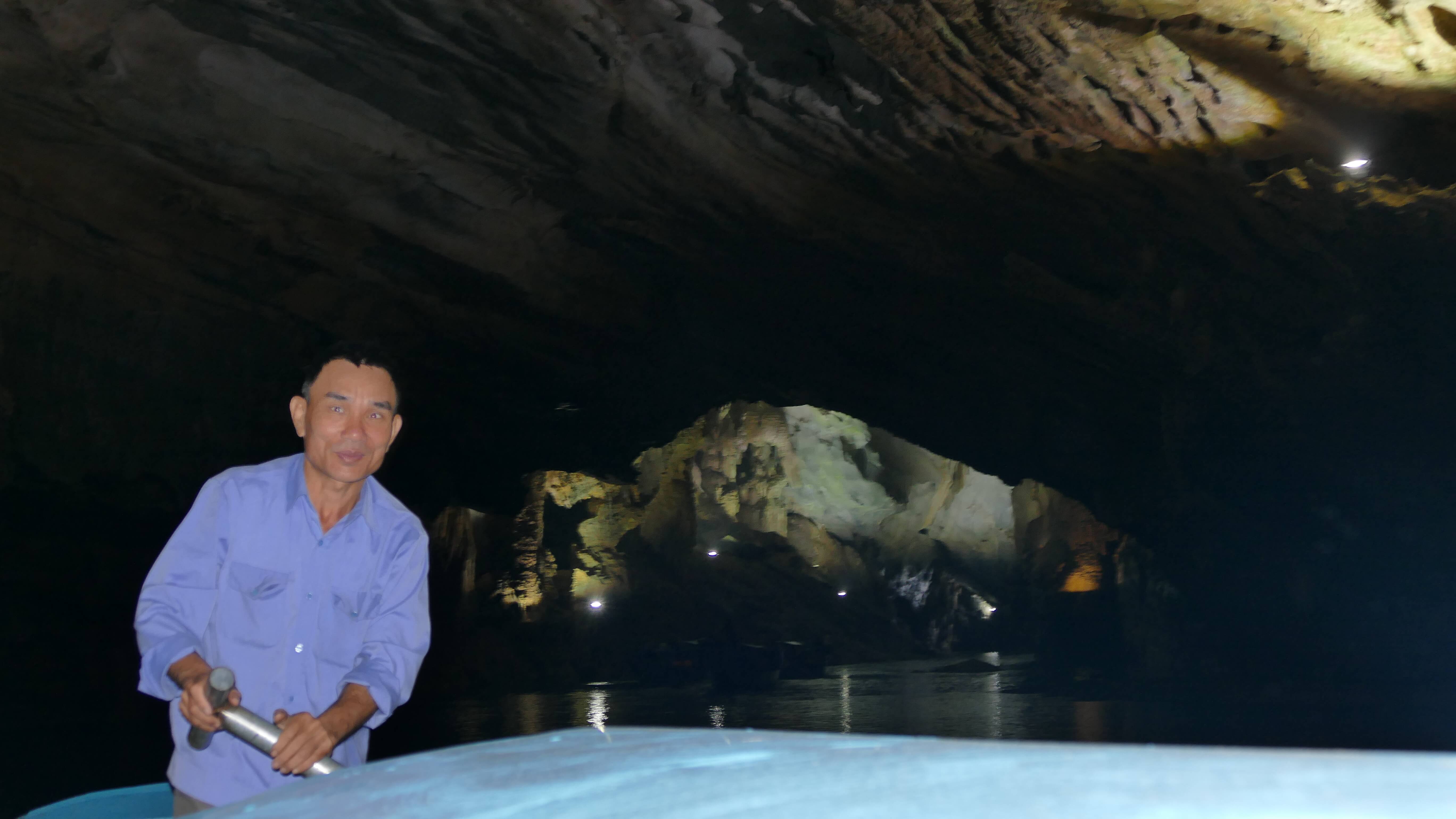 About 3-5km up river  we were driven with lots of locals fishing(?), and doing their thing on the river and on the shore.  Then around the corner, and into the “relatively” small opening in the side of the mountain.  From there, the motor was switched off, and two paddlers guided the boat through the cave for about 1-2km of just AMAZING caverns and huge formations, all tastefully illuminated.