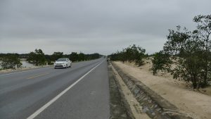 We ended up on this major highway, hardly any traffic, went on forever, and nothing around us – just sand dunes and lots of low shrubs/bushes – not even roadside stalls every 2-3km like we have seen everywhere up to now.
