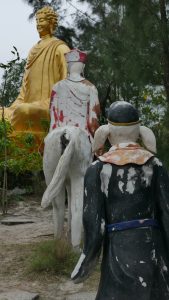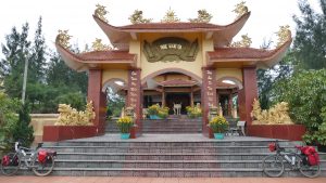The countryside was certainly very desolate – we were not certain if was so desolate as a result of the American War in the 60s 70s or not. This part of Vietnam got some of the worst of the bombings with defoliation and fires, that it has taken decades to recover. But on this road, we made good progress as there was nothing to see and nowhere to take breaks. Suddenly, out of nowhere, there was a temple/shrine/memorial that was impressive, but really seemed out of place here in the middle of nowhere.