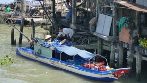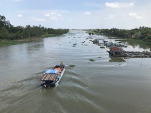 We cycled along the Mekong for most of the day – the road was quite pleasant, with lots of little bridges for side rivers (some being rebuilt, some just big enough for 2 scooters).