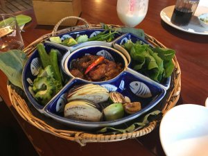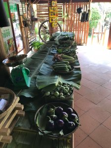 We past many coconut plantations, and a coconut oil processing plant (huge facility) and after almost 5 hours in the heat, got to our destination – Picnic Resort. We found it on the Internet, with little possibilities to book anything, and where we first arrived we were expecting the worst. But the bungalows were simple but well equipped and spacious, the food was great, and they had a very large meeting area/restaurant/bar. It seems it is sued a lot for conferences and meetings, and is an eco-friendly/organic farming facilities, growing lots of different vegetables of which we got to taste many sorts at dinner.
